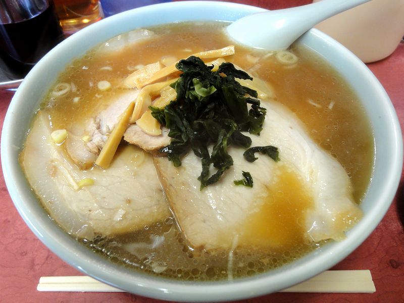 まずはネギチャーシューですが、今日のスープはちょっとワイルド系。それでも、ニンニク投入で全く問題ないレベルとなりますが。そして、この日はやたらとお腹が空いていたので、ライスも一緒に頼んでしまいました。もっとも、いつもネギチャーシューとかネギ味噌チャーシューをいただく時、暴力的なチャーシューの活用と思っていたので、ライスのおかずとして今回は有効に活用したという気分になったのですが、如何せんお腹が空いているからといってMAXの容量が増えているわけではないので、食後はかなりいっぱいいっぱいになってしまったというか。