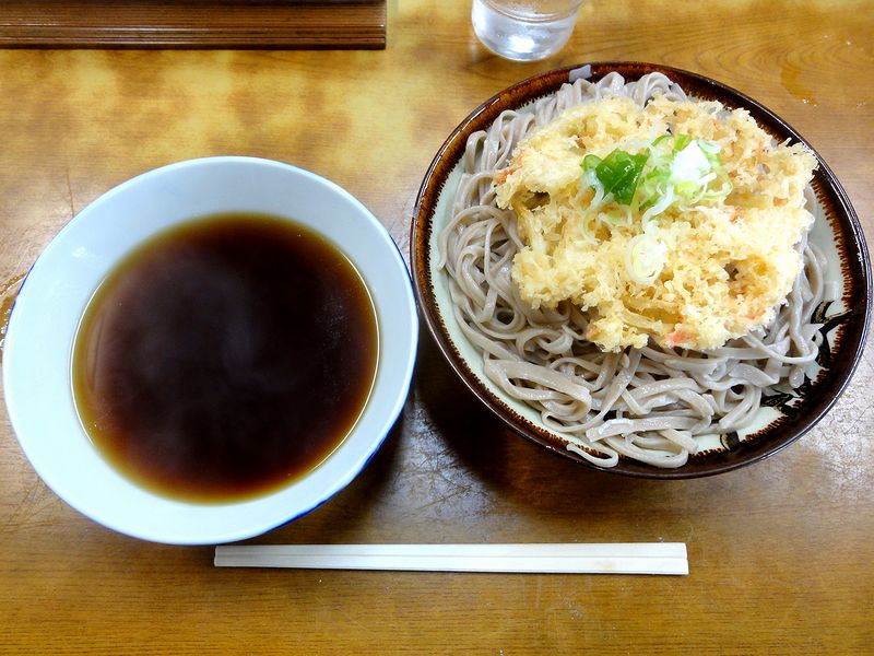 私の生まれ育った栃木県の真ん中からちょい北あたりのローカルフードかもしれない、茹でて水で締めた蕎麦を丼に盛り、つゆはまた別の丼で。そして場合によっては天ぷらが蕎麦の上に乗っているという冷やしそばとかひたしそばという食べ物なのですが、個人的に昔から結構いただいているのがこちらのお店。