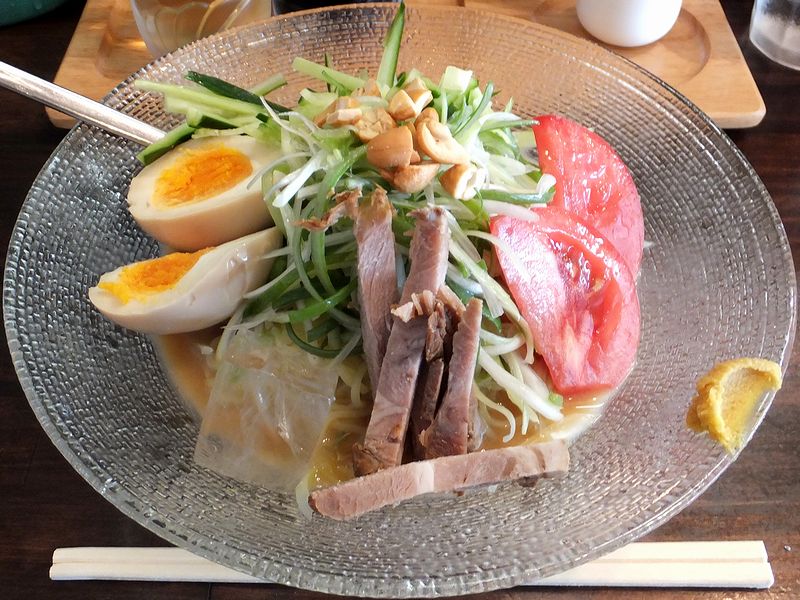というわけで、お品書きも見ずに注文。で、その後でお品書きの写真が目に入ったのですが、ビジュアル的には白ネギの載った冷し中華のようで、それは実物が登場しても変わらずというか。とりあえず全体をよく混ぜていただくのですが、麺はラーメンとは違う細麺で、そこに甘味と酸味が効いた胡麻ダレが絡むという感じで。また白ネギは、良くさらしてあるのか辛味はほとんどありませんでした。