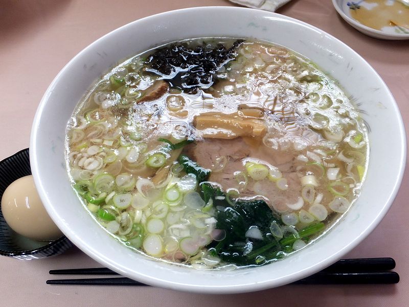 個人的には、こちらにお伺いするのは2度目。それで前回お伺いした時「次は味噌いってみよう」と思った記憶もあるのですが、そこからだいぶ経っていた(数えてみると3年ぶりでした…。)ので今回もスタンダードなラーメンを。また、味付け玉子も一緒に注文しました。で、登場したラーメンは、以前と変わらぬグリーンな見た目。醤油っぽい色の付いた味付け玉子は別皿で提供されるんですね。で、まずはスープからいただくと、まさしく「クリアーandナチュラル」という感じ。透き通ったスープは見た目どおりのスッキリとした旨味をベースに、たっぷり載ったネギの風味が食欲をそそるというか。そして手打ちの麺は、手打ちらしいピロピロとした啜り心地とモチっとした噛み応えを兼備。また具のチャーシューは塩味なんですかね?塩ラーメンの味を邪魔せず、それでいてちゃんと肉っ気もプラスしています。あと、岩海苔がまた良く合っているというか、風味と食感がとても良いアクセントになっています。それに、味付け玉子も良い塩梅で、黄身の具合も丁度良い感じでした。