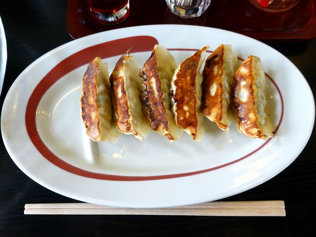 で、いただいたのは、夏季限定メニューにして両方単品で頼むより20円お得になるというこちらのセット。まずは冷し担担麺ですが、最初に全体をよく混ぜてからいただけば、茹でたあと締められてコシの増した麺に、ピリ辛でコクのあるゴマだれと挽肉が絡んで、間違いようのない旨さ。もっとも、ピリ辛といっても、こういったお店ゆえ辛味は抑えめなので、その後ラー油を追加投入し、ピリピリ辛くらいにした方が個人的には好みの味になりました。それとなぜかライスが欲しくなったのですが、同じ物を食べていた隣のオジサンもそうだったらしくて追加で注文していました。(私は我慢しましたが。)そして餃子ですが、こちらでいつも感心するのがその焼き加減。セントラルキッチンで作られた冷凍(チルド?)物でも、ちゃんと焼けばちゃんといただける物になるというか、旨いんですよね。