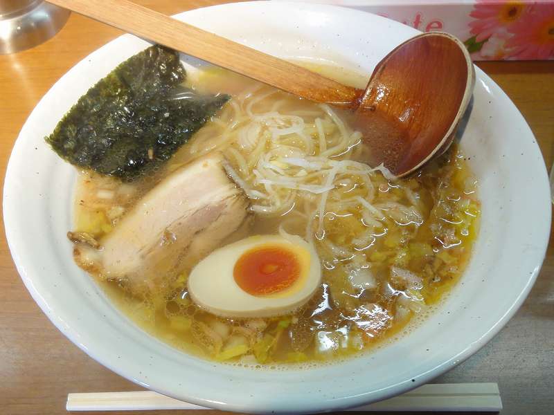 お店の畑で採れた旬の野菜がたっぷりと入るこちらのたんめん。季節ごとというか、その時その時で入る野菜によって味が変わるのでまさしく一期一会の味。今回のも、普通大根なんてタンメンには入らないと思うのですが、こちらではアリというか、これがまた旨かったりするんですよね。また、それらの野菜を受け止める豚骨スープや、ツルっとした食感のラーメンと違う麺も秀逸かと。それと追加の煮玉子ですが、毎度の事ながら良い味加減とホクホクした気味の甘味が良いんですよね。