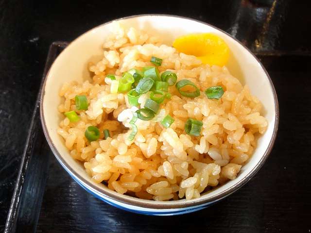 こちらのサイドメニューで、いつもついいただいてしまうのがこちらのかしわ飯。ラーメンと一緒にいただくのに丁度良い味加減で、ランチタイムだと100円というのが嬉しいです。