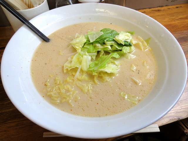 こちらは、同行者がいただいた物。肉無しで野菜少なめだとこんな感じ。で、今回は麺の量が多かったらしく、結構苦労していました。