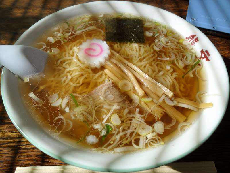 喜多方で朝ラー後、会津若松城を見学し、そして再び喜多方に戻って日中線記念館に立ち寄った後、国道121号大峠道路を通って山形県米沢市へと入ったのですが、米沢の食べ物といって個人的に真っ先に思い出すのが、米沢ラーメン。(米沢牛が思い浮かばない辺りが何とも…。)もとから、通るからには是非ともいただこうと思っていたところなのですが、今回は中でも有名なこちらのお店でいただく事に。で、お店に到着したのは午後1時頃だったのですが、駐車場はほぼ満車(丁度出るクルマがあったので停められました)。入り口には5,6人の待ち客があり、ちょっと待ってから小上がりの座卓に相席となりました。