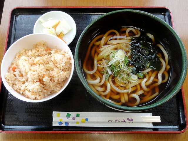 かけうどん 250円 + 鮭ごはんセット 140円