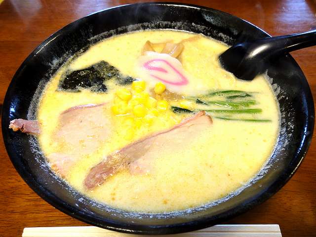 こちらは、同行者がいただいた物を例によって。で、まずはスープですが、口当たりは乳製品のようなクリーミーさが有り、更には豆乳のコクも有るのですが、ショウガが効いているお陰か後味は結構キレもあるというか。また、チャーシューがごまみそと違って歯応えのあるロースになるのですが、これもまた良いお味です。
