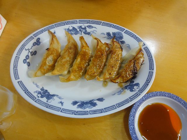 こちらは、一緒にいただいた物。小ぶりで皮が薄いタイプで、中の餡はニンニクが結構効いてます。また焼き加減も丁度良く、何ていうか、ベーシックな美味しさというか。ちなみに、卓上には酢・醤油ではなく、あらかじめ調合されたタレが置いてありました。