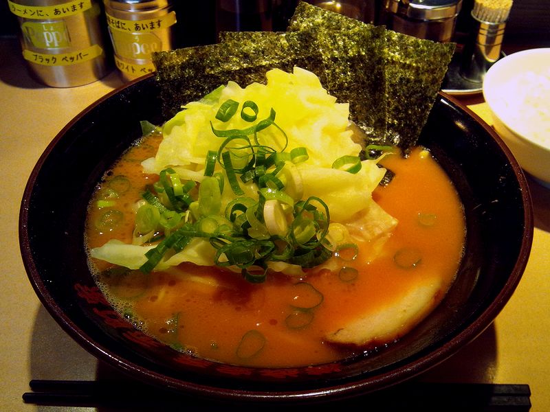 ラーメン 650円 + みそ 50円 + トッピングキャベツ 100円 + 半ライス 100円