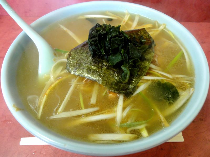 土曜日の開店15分位前にお店に着いたところ既に数人の待ちで、開店までは10人以上の行列が。やがて時間となりお店に入ったのですが、注文は並んだ順に、という訳ではないようですね。そして注文して程なく、小皿に入った「本日のスープ」が配られたのですが、ひと嘗めしたところ、かなり濃厚な白湯豚骨という感じで。