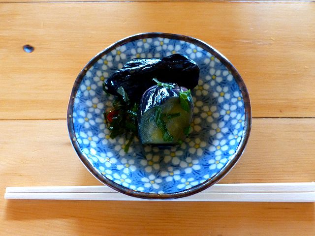 ベトナム風つけ麺をいただいた翌日、色々と事情があって時間のない中、またこちらで昼食をいただくという事に。で、注文後にサービスで出してくださる一品をいただきつつ(ちなみに、昨日のもろきゅうではなく今日はナスの漬け物が登場。これも旨かったです。)待つこと少しでご対面したのはこちら。
