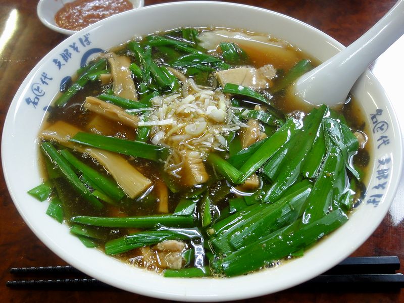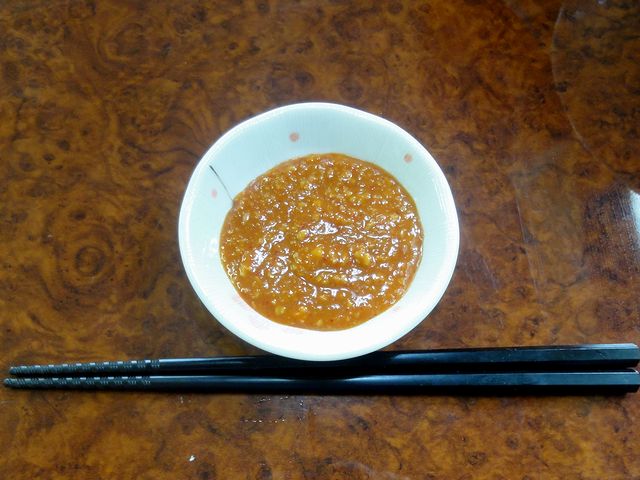 これは追加で注文した物。いただいたニラそばにも少量使われている他、デフォルトの支那そばにこちらを載せたメニューがあるようで。で、そのお味ですが、そのまま少量嘗めてみたところ、ニンニクがかなり効いていて、唐辛子の辛味の他、甘みも多少あるかと。それでニラそばに投入したところ更にインパクトが増加。また、肉もり丼にチョイ足ししても合うというか、これで白米(メニューにあります)いただいても美味しいかもしれません。