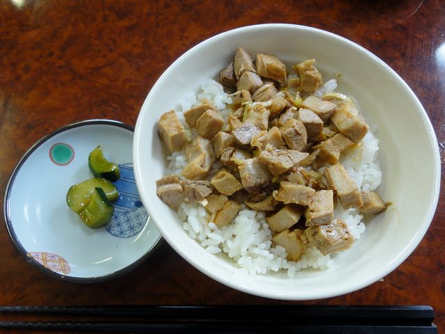 こちらは一緒にいただいた物。いわゆるチャーシュー丼ですが、サイコロ状に切られたチャーシューは(トロトロというわけではありませんが)結構柔らかく、甘さ控えめのサラッとしたタレが個人的には好み。また、お値段の割にはボリューミーですね。