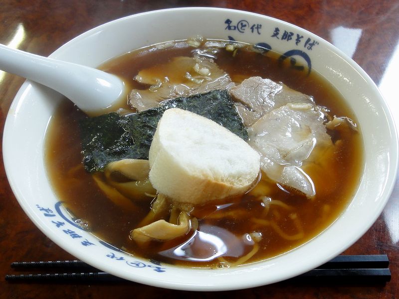 こちらは、同行者がいただいた物。煮干しの香りと上に載ったお麩が、個人的には同じ秋田県内の十文字ラーメンを連想させるのですが、当然ながらニラそばよりも、煮干し風味を堪能できます。(っていうか、こちらのラーメンって、その十文字ラーメンを元にしているんですかね?)