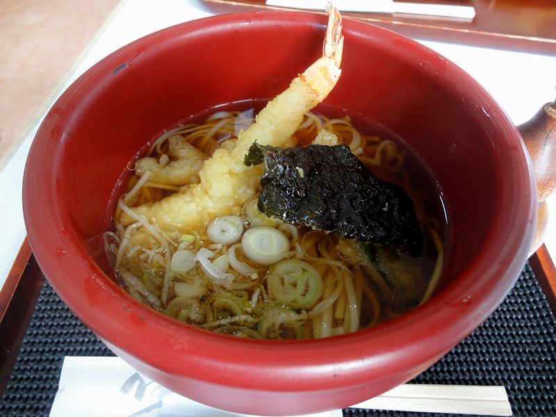 そこでいただいたのは、秋田名物の稲庭うどん。暖かい物と冷たい物があったのですが、いつもの天ぷらそばのノリでこちらを選択しました。で、まずはつゆからいただくと、だし感もあって旨味も効いてますが、それよりも醤油を感じる東北らしい物。だからといってしょっぱい訳ではなく、個人的には好みの味です。うどんは当然平たい形状の稲庭うどん。ツルツルっと軽い喉越しが良いですね。個人的には乾麺が好きな事もあってかなりの高評価というか。また、具の天ぷらが揚げたてというのが、こちらが『レストラン』たるところでしょうか。エビはプリプリで、海苔は香ばしかったです。