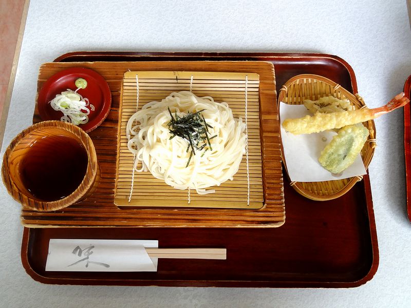 こちらは、同行者がいただいた物。例によってちょっといただきましたが、つゆの印象が暖かい物とちょっと違って感じられました。もっとも違ったからと言って駄目というわけではなく、こっちはこっちでイケるんですが。また、冷たく締められたうどんは、当然ながらコシと喉越しがアップ。こちらも良いですね。