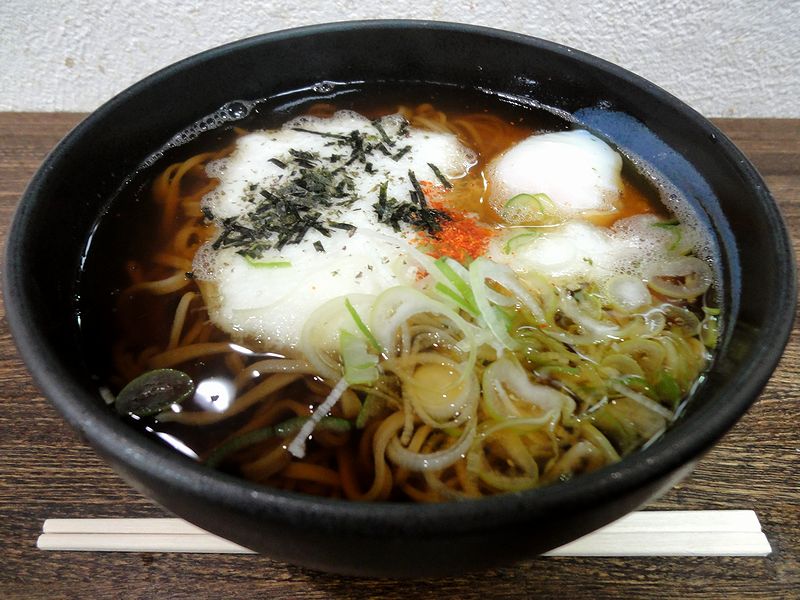 つゆは、見た目に反して塩気がかなり抑えめ。こちらのPAのメニューのコンセプトの1つに『健康』というのがあるので、多分そうなっているのでしょう。(個人的には、このテのそば・うどんはある程度しょっぱい方が美味しく感じるんですが。)そばは乱切りタイプの(多分)冷凍麺。 具のとろろと温玉の相性は良いのですが、前述のとおりつゆの塩気が抑えめなので、全体的にちょっと薄まる感があるというか。(もっとも、卓上の醤油を追加投入すれば問題ないんですがね。)