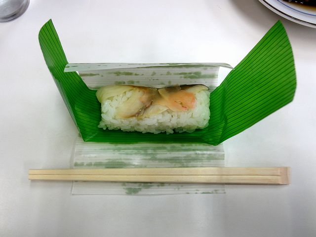 これらは、一緒にいただいた物。早ずしは鯖の押し寿司の事で、乳酸発酵を利用して作る熟(な)れ鮨(琵琶湖の鮒鮨が有名ですが、和歌山北部では鯖で作られていたとの事。)に対して、酢を用いて発酵させずに作る早熟れ鮨から早鮨となったらしいです。ちなみに、当地で中華そばをいただく時は、一緒にいただくのがお約束で、こちらのお店ではあらかじめ各テーブルに置いてありました。で、こちらも1ついただいてみたのですが、中華そばがわりと小振りなので、一緒にいただくと丁度良い感じですね。またおでんも、当地では中華そば店に置かれていることが多いらしく、基本的にセルフ方式で客が勝手に取っていただくようになっているそうです。(こちらのお店でもそうでした。)で、今回は、牛スジ、コンニャク、ごぼう巻き(これらの他にも、豆腐や玉子などのタネがありました。)をいただいたのですが、どれも味がしっかり染みていました。