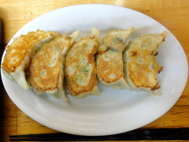 一緒にいただいたぎょうざは、結構なジャンボサイズ。さほど厚くないけどモッチリとした食感の皮の中には、生姜が効いた野菜メインの餡がギッシリと入っていて、サッパリとした味わいながらも食べ応えがあるというか。