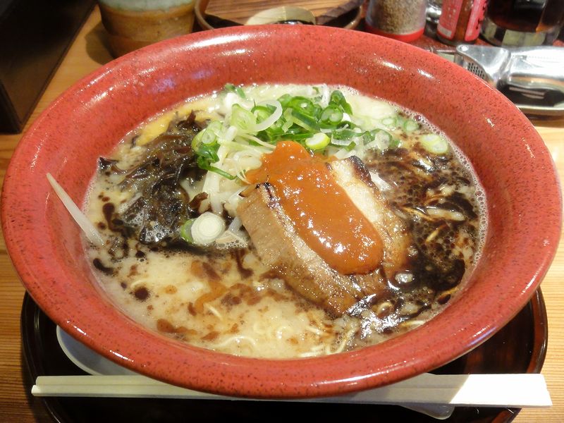 いただいたのは、白龍とも迷ったのですが、結局こちらに。それでスープは、風の杜グループ共通の洗練された豚骨白湯をベースに、マー油と辛子味噌が載った物。これって、黒風や黒麺のアップ桜と同じなんですかね。(違っていたら申し訳ない)バリカタ(ちなみに、お店のオススメはカタメンです。)でいただいた麺は、丁度良い固さ。個人的に硬い麺はあまり好きではないのですが、こちらのグループの麺は、硬くても美味しくいただけるというか。(むしろ、固めの方が美味しく感じる今日この頃。)そして具は、焼き目の付いた香ばしいチャーシューや、たっぷり入るコリコリのキクラゲなど。で、これに豊富に用意された卓上の薬味類を適宜追加していただくのですが、『黒』タイプだと、元々の味が賑やかなので、『白』タイプに較べるとカスタマイズする楽しみが少々減ってしまうのは贅沢な悩みでしょうか。