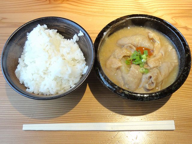 こちらは、ラーメンと一緒にでいただいた、モツ煮と小ライスのセット。そのモツ煮は、味噌で煮込まれた牛モツがトロッとした食感。また、モツのそのものの香りが結構感じられたのですが、何ていうか、以前九州でモツ煮をいただいた時の味を思い出したりして。