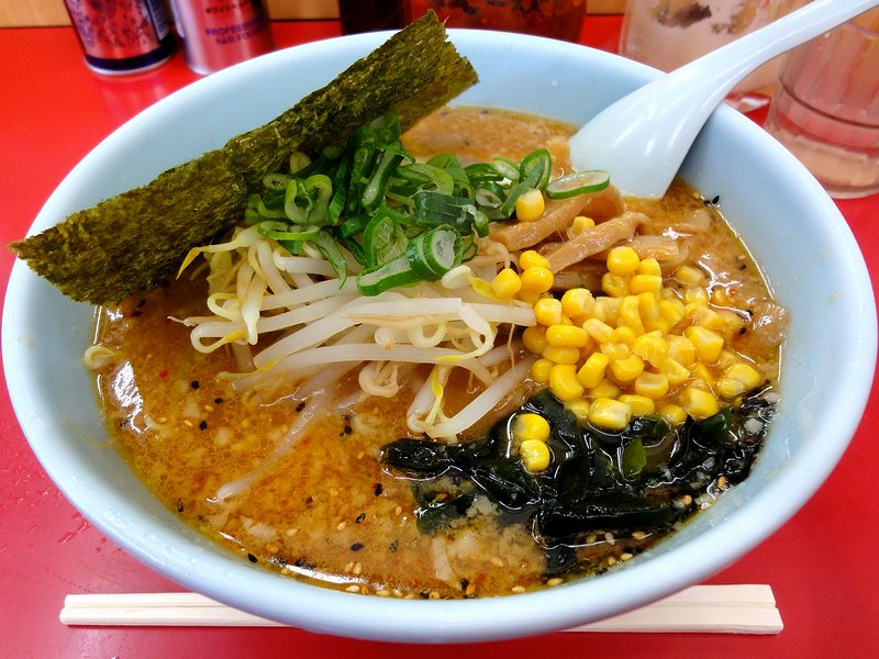 こちらは、同行者がいただいた物を例によって少々。こちらも、ベースはいわゆるラーショの味噌ラーメンだと思うのですが、そこに唐辛子がピリっと効いていて旨いです。そしてやっぱり、ニンニクとお酢が良く合いますなぁ。また、モヤシを始めとする具が、結構載っていましたね。