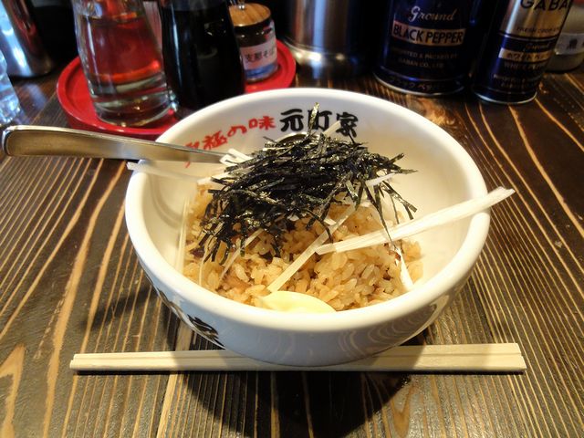 こちらは、券売機で見かけてつい食券を購入してしまいました。で、中身というか実物は、肉系の炊き込みご飯。そのままでもしつこく感じないくらいの味が付いていて、ラーメンとも良く合うのですが、添えられたマヨネーズ(何と凶悪な!)を混ぜていただくと、もう。カロリーさえ気にしなければ、何とも良いサイドメニューですね。(もっとも、家系いただいている時点でカロリー云々言ってもアレですけど。)