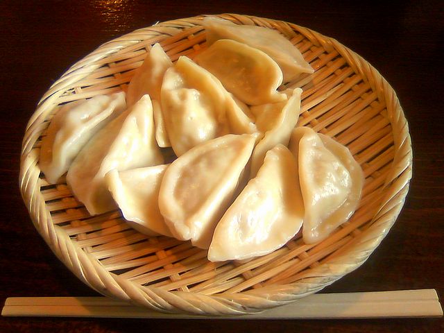 こちらのは一緒にいただいたもの。看板メニューであるゆで餃子ですが、モッチリとしたやや厚めの皮に詰まった餡は、しっかりとした味。こちらも漢方臭さは微塵もなく、またニンニクは入っていませんが、ショウガの風味で後味さっぱりという感じで、何も付けなくても美味しくいただけますね。また、卓上には4種類の調味料があり、中でもにんにく醤油がお奨めだそうですが、色々試した結果、個人的には黒酢が良かったです。(でも、黒酢の風味って、駄目な人は駄目ですよね。)