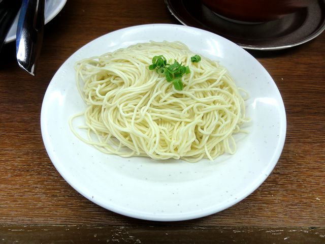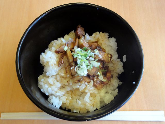 こちらは、つい一緒に注文してしまった、ランチ限定のセットメニュー。小振りな丼に入ったご飯の上には、甘辛い細切れのチャーシューと白ネギの刻んだものが載っていて、なんていうか、間違いのない味です。