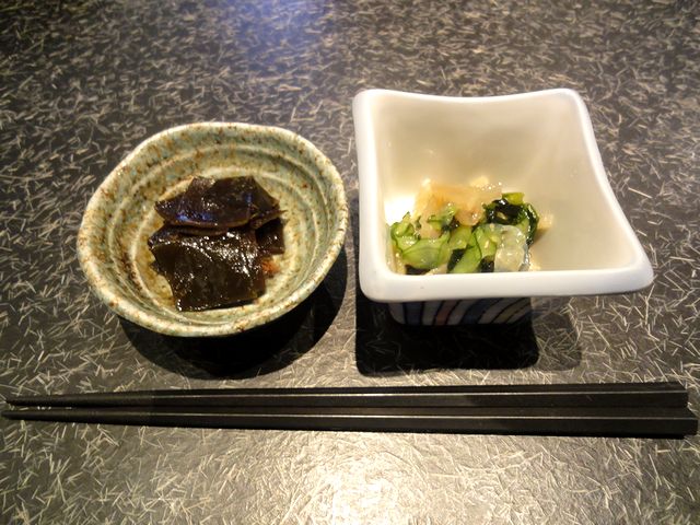 お通しは、昆布の佃煮とクラゲの酢の物。佃煮はだし汁を取ったあとリサイクルしたものだと思ったのですが程良い味加減でこれがなかなか。またクラゲは、個人的に好物だったので嬉しかったですね。そしてお酒は、当地の地酒があったのですが、この日は熱燗が飲みたかったのでデフォルトの物を。(良いお酒で熱燗は勿体ないというか。)ですか、これはこれで悪くなかったというか、美味しい料理にお酒が進み、ついついもう1本頼んでしまいました。