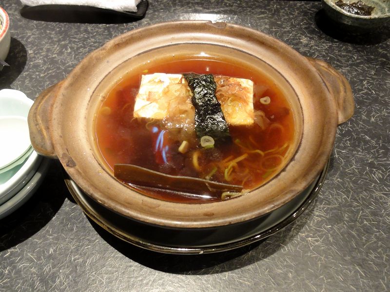 こちらは次に登場したもの。で、こちらのお店の湯豆腐は一般的な物と違って、あらかじめ味の付いただし汁に入って出てくるのですが、このだし汁がまた良い塩梅で。これも美味しいですね。