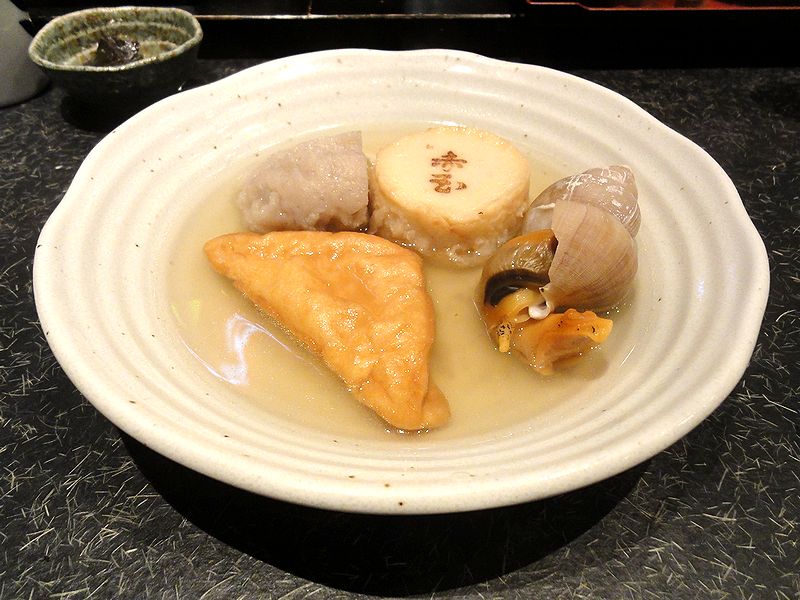 こちらは、追加でお願いしたもの。ふかしも北陸地方独特の練り物らしく、いただいてみるとハンペンとカマボコの中間といった感じでした。それと車麩も、個人的にはおでんでは珍しく感じたのですが、だし汁を吸って旨いですね。(ちなみにこの後、我が家で作るおでんには、車麩が定番の具となりました。)