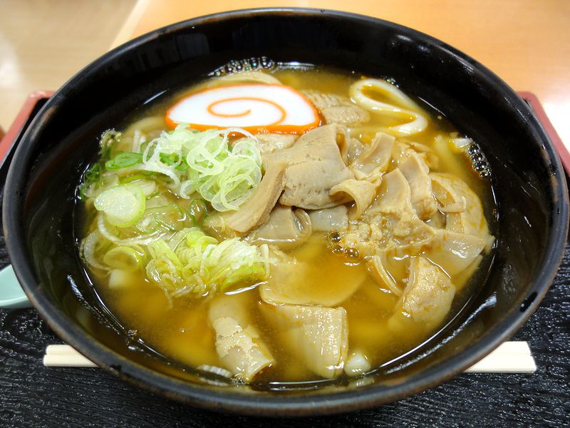 こちらは、同行者がいただいたというか、いただかせた物。つゆは、味噌と、何故かチューブっぽい風味の生姜が効いていて、モツはけっこう柔らかい食感。ちなみに、富山市内には以前お伺いしたもつ煮込みうどんで有名なお店があるのですが、こちらの方にはモツ煮とうどんを一緒にいただく食べ方があるんですかね?