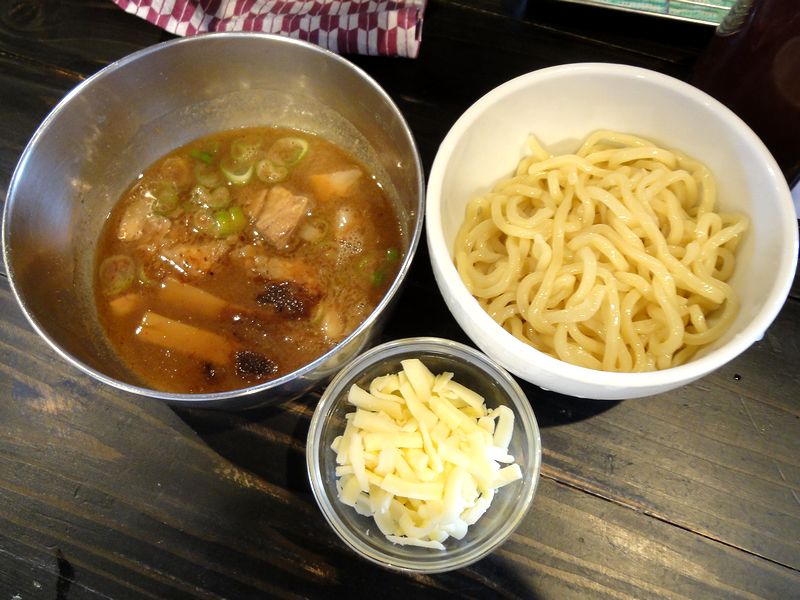 ホルモン味噌つけ麺(並・あり・ひや) 820円 (生卵とごはんはサービス)