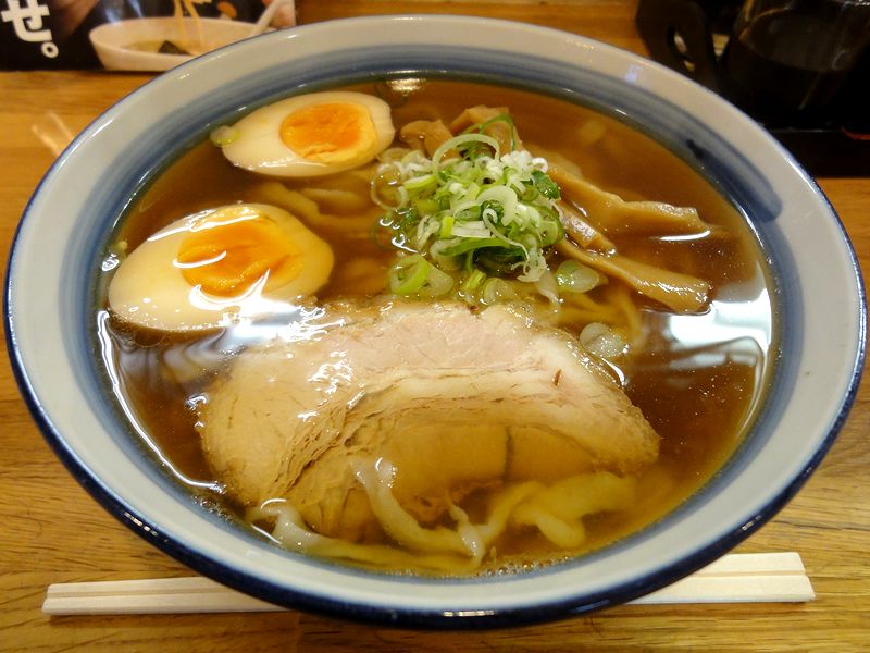 で、スープは、個人的に抱く佐野ラーメンのイメージより、旨味も味付けも濃い目でしっかりと感じられます。旨味の基は鶏などの動物系でしょうかね?そこに魚介系が主張しすぎることなく入っているような。(違っていたらごめんなさい。)また、幅が広めで幅が不揃いの麺は、手打ちなのでしょうか?それらしいピロピロ、チュルチュルっした口当たりの、若干柔らかめの食感が良いですね。そして具は、チャーシューがトロッと柔らかくて、味加減が丁度良く。個人的にはトロトロのチャーシューより歯応えがあるタイプが好みなのですが、こちらのは気に入りました。(これなら、チャーシューメンにすれば良かったかも。)それと味玉も、黄身がトロトロしすぎない火の通し加減や味加減が良かったです。