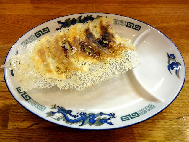 一緒にいただいた餃子は、パリパリの羽付き。個人的に抱く佐野ラーメン屋の餃子はモッチリ厚めの皮で大振りというイメージなのですが、こちらのは可愛らしい印象。で、お味の方は、ラーメンがしっかりした味のせいか、優しく感じられますね。