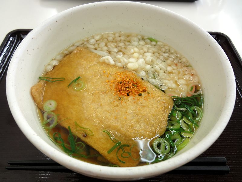 あとでネクスコ西日本のウェブサイトを見たところ、こちらのお勧めはカレーうどんのようでしたが、この時は「大阪=きつねうどん」と、何も考えずに食券を購入しました。で、このきつねうどん。関東の人間なので、このテのだし汁やお揚げさんの味について、詳しく表現できるだけの経験値がなく毎度毎度同じ表現で申し訳ないのですが、丁度良い加減で、何ていうか普通にいけるというか。また、うどんが大阪らしく、妙にコシが強くなかったのも良かったです。それと、関西圏らしく揚げ玉がサービスで入れ放題というのも良いですね。