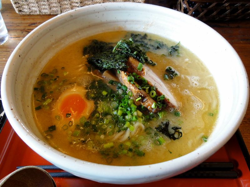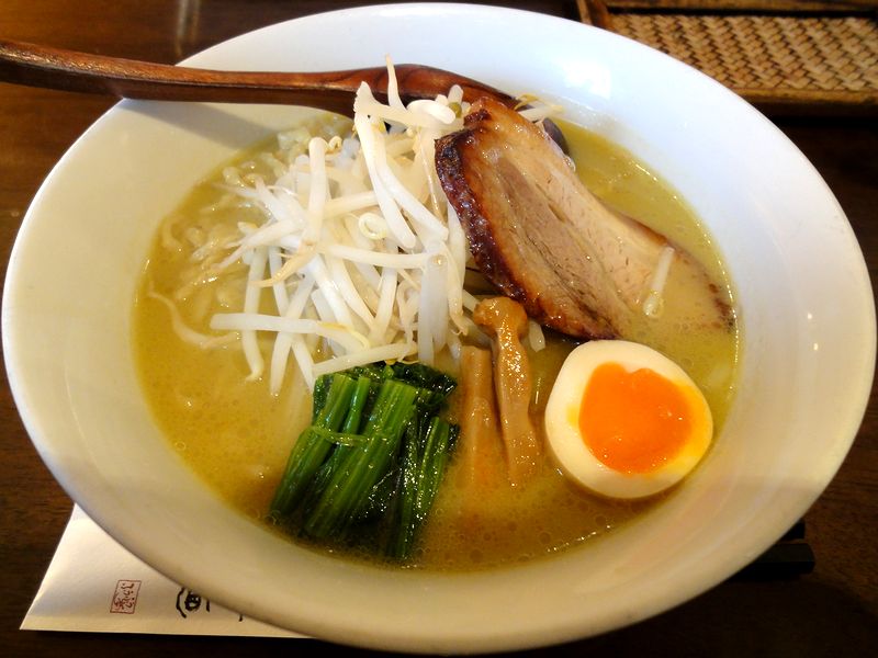 で、そんな中、私がいただいたのがこちら。塩味の鶏白湯スープは、鶏の旨味がギュギュっと出つつもどこかサラッとしたところもあり、くどすぎないような。そしてそこに絶妙なコンビの岩のりがたっぷりと入って、もう。また麺は、スープと良く合うソリッドな食感のストレート麺。そして具は、前述の岩のりの他、ホロトロのチャーシューと良い塩梅の味玉など。また、何気にネギが青ネギというのも良いですね。