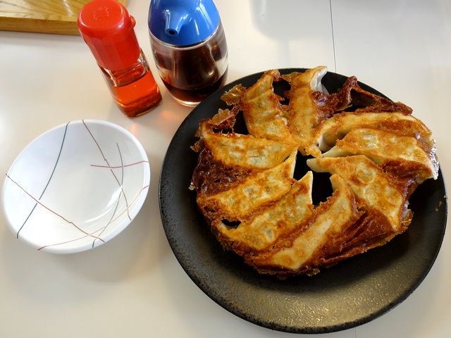 こちらは焼き始める時、半透明のトレーに載った餃子をフライパンに並べだしたので一瞬???となったのですが、さすがはこちらの店主さんが提供する物。普通水を投入するところを、豚骨スープを(けっこうたっぷりと)投入し、じっくりと焼き上げていました。で、お味の方は、パリパリサクサクの羽が付いて香ばしい皮に、中まで豚骨スープの旨味が染み渡ってトロトロの餡の組み合わせが結構いけてるかと。ただし、中の餡は激熱なので、いただく時不用意に口に入れてしまうと、結構つらい事になるかも知れません。