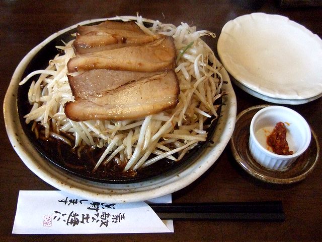 こちらのお店に通い始めて以来、こちらで個人的に一番好きなメニューと言えば、この味噌拉麺。昨年の暮れにお伺いした時、お店の方から、年明けから昔の味に戻すというお話を聞き、今回いただいたのが私が最初にいただいた時にもの凄い感動したあの味と同じかどうかは自信がない(麺も変わっていますし)のですが、濃厚麺のアップだけどどこかスッキリ感のあるスープに、モチっとした麺、そして濃厚なスープと合う茹で野菜の組合せは、やっぱり、とても美味しいですね。で、麺と野菜を堪能した後は、もやしチャーシューセットの小ライスを投入。こちらの味噌拉麺には、個人的には噴火飯ではなく、この残りスープにライス投入が一番美味しい堪能の仕方だと思うんですが。他にも、初めていただいたもやしチャーシューはボリューミーでタレが香ばしく、セットのサラダも相変わらず美味でした。