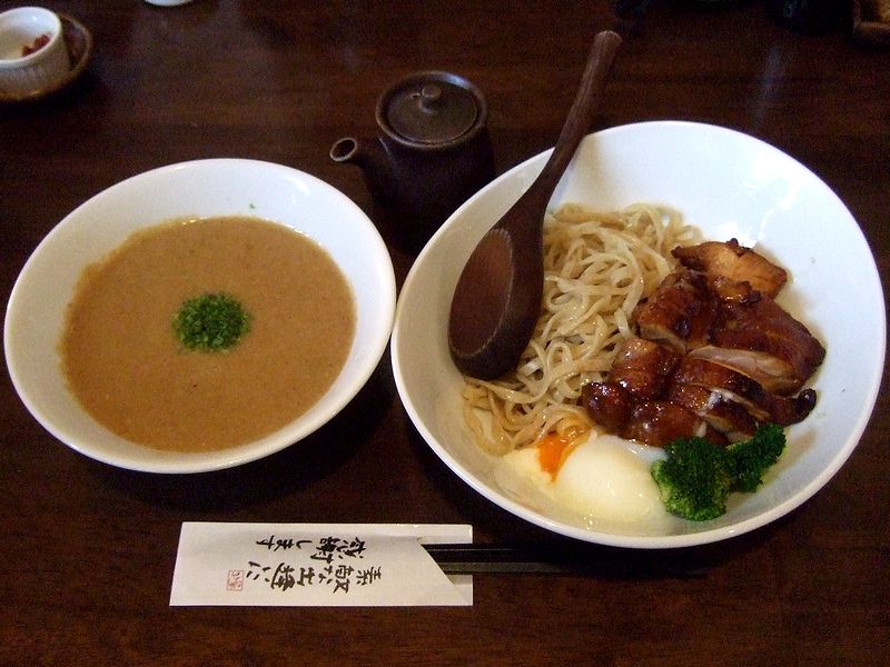 それから、同行者がいただいた濃厚チーズ味噌つけ麺も味見させてもらったのですが、これがまた名前の通りいろんな意味で濃厚。店員さんによると具の半熟玉子を麺に絡めてからいただくとのことですが、まずは麺を浸けようにもつけ汁に全然沈んでいかないという物理的な濃厚さもあり、また、いざ味わってみると麺と卵とドロドロなつけ汁が絡み合って、味的にもとっても濃厚。それにしても、チーズと味噌は良く合いますね。それと、付け合わせの鶏肉は、これだけで立派な一品料理。香ばしい風味が食欲をそそり、食べ応えもかなりありました。