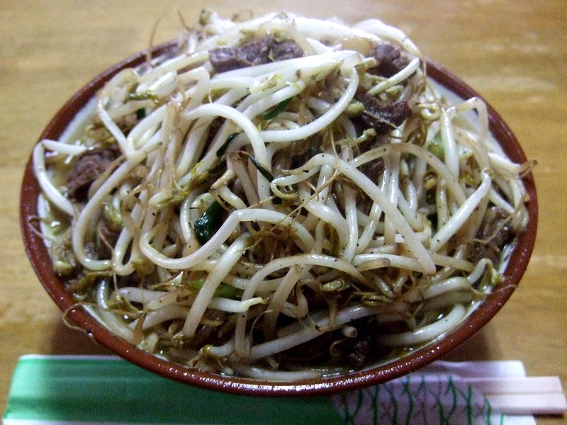 お店に到着すると、休日などは行列が出来るとのことですが、さすがに月曜日の午前11時前だと先客はなし。早速席に座り、件の牛肉そばをお願いすると、厨房では大きなボウルに山盛りにされた薄切りの牛肉を細切りにして、野菜と一緒に炒め始めました。その匂いがまた食欲をそそる、何とも良い匂いだったんですよね。そして、程なくして完成した牛肉そばなんですが、まず見た目からしてインパクト十分。丼は標準的な沖縄そばの大きさなのですが、丼の上部には、具の牛肉とモヤシ(九州などでよく見る細くて歯応えのあるタイプです)、そして少量のニラを炒めた物がてんこ盛りになっています。で、まずはその具からいただかないとそばや汁にたどり着けなさそうなので早速手を付けたのですが、この具が味もインパクト十分。まずは黒コショウの風味と辛味がバチンと来て、さらにはバターやニンニクも効いた大変しっかりとした、これだけで立派なご飯のおかずになる味ですね。その具を食べ進むと、ようやく中太のそばとご対面。汁は豚骨ベースらしいのですが、そばも汁も、具の味と渾然一体になっているような印象で、それらを夢中でワシワシといただいていると、かなりの満足感がありました。それにしても、最初っから最後まで、パンチ効いてたなぁ。