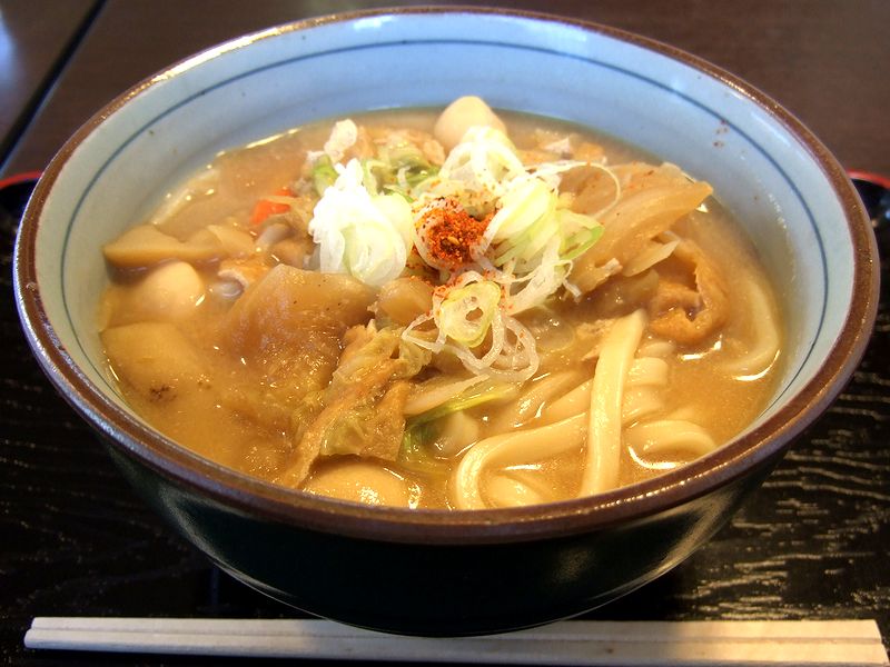 で、そこでいただいたのはけんちんうどんなんですが、味噌仕立てのけんちん汁でうどん(食感からすると冷凍物だと思うのですが、自信なし。)を煮込んだ(食券提出時に、煮込むので時間が掛かる旨確認されました。)物。けんちん汁の具材は根菜類や油揚げ、それに白菜などで、その旨味が溶けこんだ濃い目の汁が、とっても良いですね。身体が暖まりますし、結構食べ応えもありました。