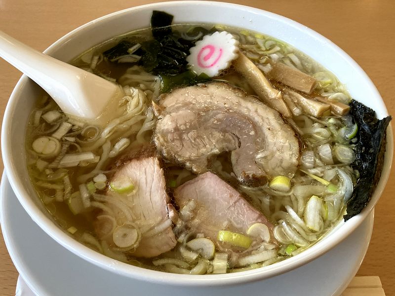 それで今回私がいただいたのは、初めてとなる塩ラーメン。もっともだいぶ前、塩チャーシュー麺はいただいたことがあったのですが、正直、どんな味だったかあまり覚えていないし、その後、ベースとなるスープ(出汁)や麺もブラッシュアップされていると思うので、実質初めてということで。