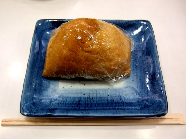 それから、ジャンボいなりは、確かに大きな握り飯ほどの大きさがあり、かなりの食べ応えで、味も美味しいです。ちなみに、関西のおいなりさんなので、形は三角形で、中はただの酢飯ではなくゴマや野菜類などの具が入っています。