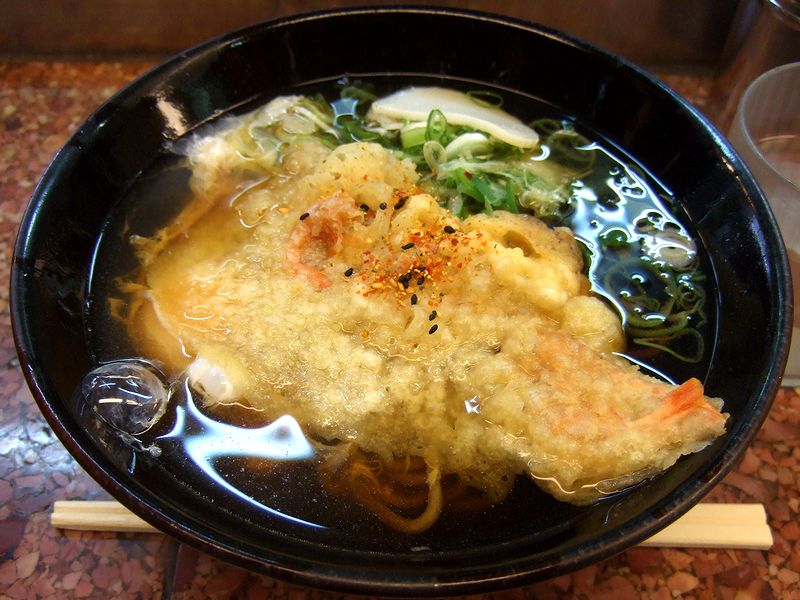 で、そのスタミナうどん。つゆは、いかにも大阪~って感じのダシが(って言っても何のこっちゃですかね)効き、味付けは薄口醤油がメインだと思うのですが丁度良い塩梅で美味しいです。またうどんは、箱に入った茹で麺で、太さは太めですが食感は柔らかめ。大阪のうどんって、どちらかというと柔らかい食感のところが多いと思うのですが、個人的には変に歯応えやコシを強化したものより、こっちの方が好きというか。そして天ぷらは、個人的に大阪のこういうお店で多いと思っている、海老(小さめ)天の衣を平べったく拡大した物。つゆとも良く馴染んでふわふわの食感になって、それがまた良いんですよね。