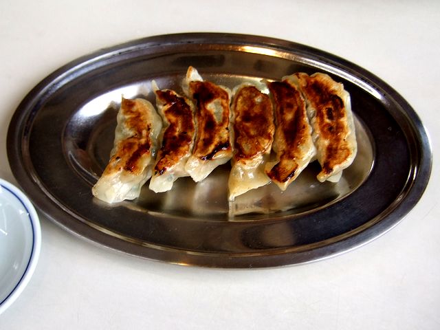 一緒にいただいたギョウザは、ステンレスの皿に載って登場するのですが、このあたりも東毛手延べ系の特徴のよう。で、そのお味は、バシっとニンニクが効いたトラディショナルなタイプ。皮はパリっと香ばしく、中の餡にはしっかりとした味があり、そのままでも美味しくいただけました。