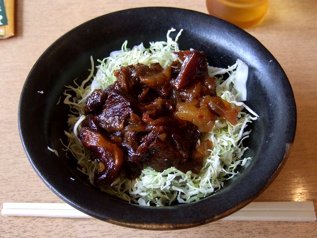 それと、一緒にいただいたミニ牛すじ丼は、柔らかく煮込まれた甘じょっぱい牛すじが、ご飯とよく合っていますね。また、プルプルっとしたりホロホロっとしたりする食感のバラエティーも楽しいです。あと、焼きギョーザはとってもベーシックな美味しさでした。