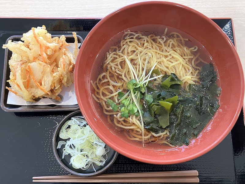 それがこの、醤油味のラーメンにかき揚げという組み合わせ。ラーメンに天ぷらや天かすを組み合わせたメニューって、あるところにはあるというか、私自身、大阪市や鳥取市、東京都、栃木県矢板市などでいただいたことがあったのですが、逆に、お店が限られすぎて食べたいと思った時に食べられないので、最近栃木県内にも店舗が増えてきたゆで太郎さんでそれが叶えば素敵だな、と。