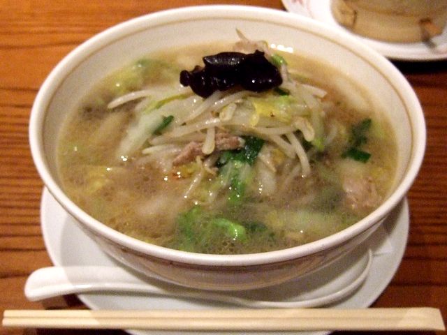 それと、同行者のを貰って食べた辛味ひき肉の卵たんめんですが、食べ始めはアッサリとした玉子スープに細麺が入った優しい味。で、これがいただいてるうちに上に載った挽肉が混ざり合い、味がだんだんと変わっていくのが面白いかと。
